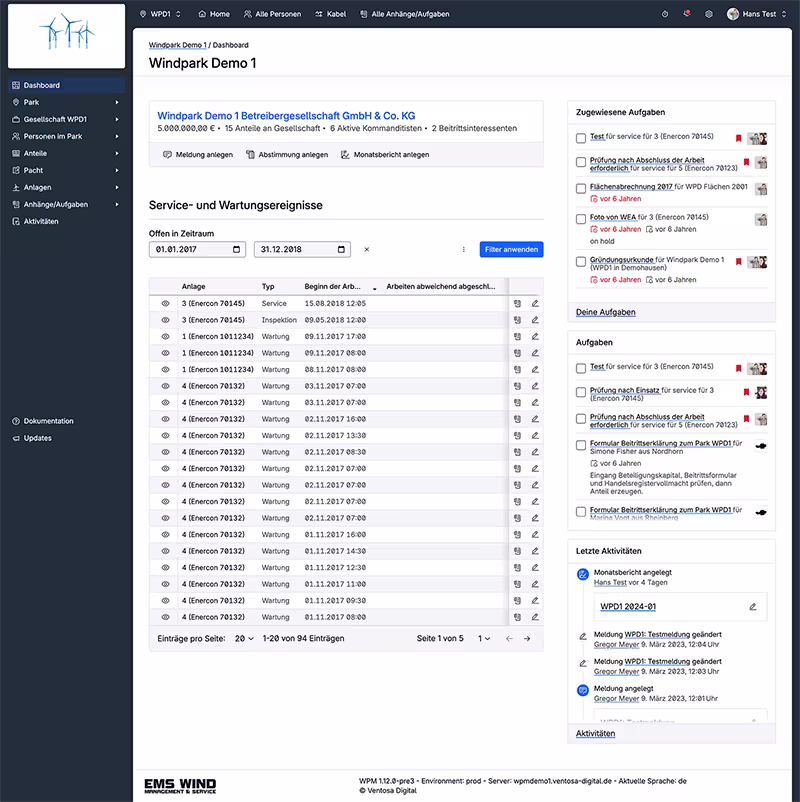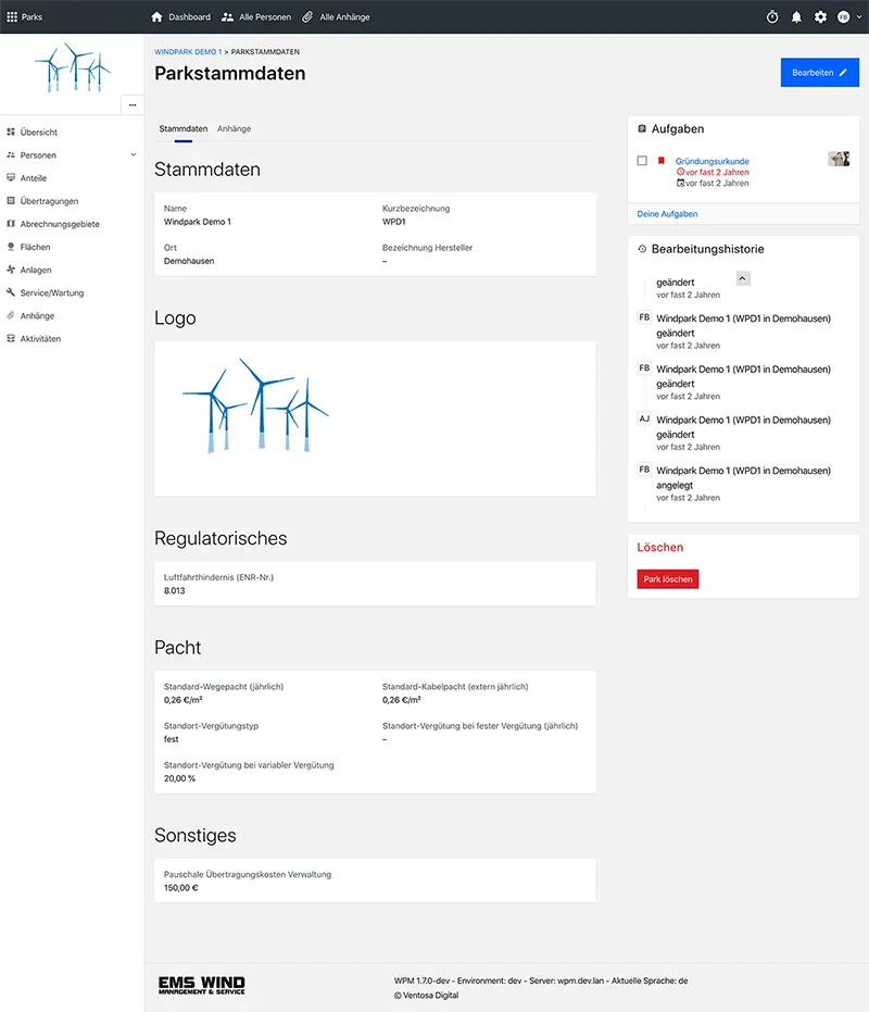 Die Anlagenverwaltung erfasst Ihre Windenergieanlagen vom Bauvorhaben bis in den Betrieb und dokumentiert Service- und Wartungseinsätze.